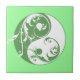 Ein anmutiges Yin & Yang Symbol von grün und weiß mit schönen Schriftrollen. Ändern Sie die Hintergrundfarbe in Weiß oder eine beliebige Farbe für einen dramatischen Look. Diese phantastische Kachel ist das ideale Geschenk für jeden.