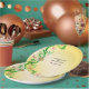Ein romantischer Hochzeitstisch. Grüne Wirbel und Schmetterlinge verleihen diesem wunderschönen Hochzeitsmotiv ein vitalisierendes Gefühl. Ein schöner Sonnenbrand im Hintergrund trägt zum Gefühl der Leichtigkeit bei. Dieser Look wird in jeder Hochzeitszeit, im Frühling, im Sommer, im Herbst oder im Winter gut laufen. Ideal für eine moderne Hochzeit und perfekt für eine klassische Hochzeit!