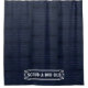 Schöner, dunkelblauer, eleganter, moderner, maskuliner Duschvorhang mit gradienten blauen Streifen und einem "Scrub-A-Dub-Dub" Badezimmer Zitat.