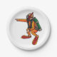 Ein Taucher in einem orangefarbenen Neoprenanzug. Dieses Design wirkt auf diese Paper-Teller sehr effektiv