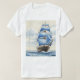The image shows a watercolor painting of a large sailing ship in a stormy sea.