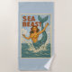 Sea Beast Retro Mermaid | Funny Coastal Beach Blue Strandtuch