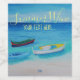 Die Acryl-Malerei von Driftbooten in der Nähe des Strandes ist ideal für einen Sommer Weißwein. Ozeanblaue Sommerfarben mit Booten, die auf kristallklarem Wasser treiben. Übertragen Sie dieses Etikett auf ein Sortiment anderer Flaschen und Getränkespezialitäten. Der Text lässt sich leicht anpassen.
