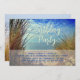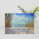 Beach Dünen Geburtstagsfeier Einladung für Männer oder Frauen, die Liebe des Ozeans. Stellen Sie Text an zwei Stellen mit einem großen Skript an der Spitze ein - Beispiel, "Geburtstagsparty", und drucken Sie Text in blau am unteren Rand. Das Design ist ein Foto am Strand mit einem sandigen Spaziergang zwischen den grasbewachsenen Dünen, die zu einem ruhigen Meer führen. Die Rückseite hat auch ein Bild von Meeresdünen.