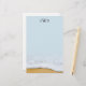 Mit Monogramm Schreibpapier mit Strand Sand und Meeresschaum-Bild am unteren Rand. Die Farbe des Papiers ist leicht blau, oder man ändert den Papiertyp. Drei schwarze Initialen oben können entfernt werden. Kante des Ozeanbildes unten. Kein Bild auf der Rückseite.