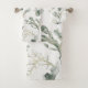 Ein nahtloses Muster zeigt zarte, grüne Algen, die über einen hellen Hintergrund verstreut sind und ein luftiges und Bio Design schaffen. Die sich wiederholenden botanischen Elemente verleihen der Komposition ein natürliches und Küstengefühl.