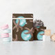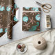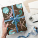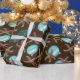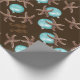 Tropisches Weihnachtsgeschenkpapier mit Seestern, Meerpferden und Aqua-Blue-Ball-Ornamenten, bedruckt in dunkelschokoladenbrauner Farbe.
