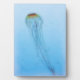 Ein Aquarellbild einer Qualle mit einem farbenfrohen Oberteil im großen, offenen, blauen Ozean. Copyright ©2017 Kimberly J Tilley.