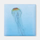 Ein Aquarellbild einer Qualle mit einem farbenfrohen Oberteil im großen, offenen, blauen Ozean. Copyright ©2017 Kimberly J Tilley.