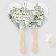 Hochzeitsfan in Gestein und weißes Hydrangea. Auf der einen Seite des Lüfters steht das Sprichwort "Von diesem Tag an vorwärts zu haben und zu halten", auf der anderen Seite gibt es Vorlagen für Namen und Datum. Papier hat einen weißen Hintergrund mit Stern aus weißem Meer und Blume sind Teil der Kollektion Seaside Garden.