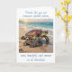 A coastal themed thinking of you friendship card to say hi and keep in touch with a friend when travelling with an illustration of a mama sea turtle and baby crawling into the blue ocean waves on a sandy beach.