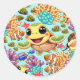 Sea Turtle Baby Happy and Süße Figur Runder Aufkleber