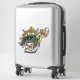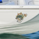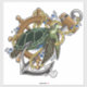 Eine grüne Meeresschildkröte, die mit einem Schiffrad, einem Seil und einem Anker schwimmt. Kunst im Tattoo-Stil.