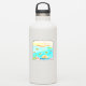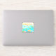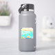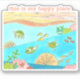 Originelles Kunstwerk von friedlichen Meeresschildkröten, die durch einen tropischen Ozean gleiten, umgeben von blauem Wasser, Fischen und Korallenriff. Im Text steht "Dies ist mein glücklicher Ort". Perfektes Sommerdesign für Strandliebhaber!