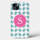 Dieses monogramm Handy Gehäuse weist ein türkisfarbenes Meeresschildkrötenmuster in tropischen Farbtönen von türkisblauem Licht auf, wobei Ihr individueller Ersteintrag in weiß über einem rosa Hintergrund gehalten wird. Kunst und Design von Victoria Grigaliunas. Weitere Fälle von Meereslebewesen und Strandtelefonen wie dieser finden Sie unter www.zazzle.com/dotellabelle