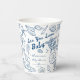 Sea you soon seashells beach boy baby shower monogrammed paper cups. Blue preppy seashells baby shower personalized paper cups, beach baby shower printed paper cups, sea turtle baby shower personalized table decor, summer baby shower party cups hand drawn doodle sketch seashells baby shower paper coffee cups, hand writing vintage baby shower personalized party coffee cups