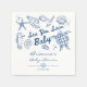 Sea you soon seashells beach boy baby shower monogrammed napkins. Blue preppy seashells baby shower personalized napkins, beach baby shower printed napkins, sea turtle baby shower personalized table decor, summer baby shower napkins, hand drawn doodle sketch seashells baby shower napkins, hand writing vintage baby shower personalized napkins