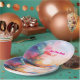 Elevate your twin baby shower tablescape with our "Sea You Soon Times Two" Watercolor Beach Paper Plates. These aren't just party plates; they are a vibrant piece of decor featuring a stunning, high-saturation watercolor sunset in electric turquoise, hot pink, and deep purple.
