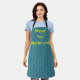 Diese Schürze hat eine geometrische Form von dunkelmeerblau senkrechten Linien mit trapezoiden Stoßfängern in ihnen auf einem Feld von leichterem Meeresblau. Behalt den Text, ändere ihn oder lösche ihn ganz.