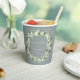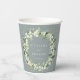 Elegante, weiche, blau-grüne personalisierte Papiertassen für Hochzeitsfeiern. Das doppelseitige Design mit handgemalten Snowberries und Eukalyptus-Snowboarden, die in einem wunderschönen botanischen Kranz angeordnet sind. Alle Texte sind vollständig editierbar, sodass Sie die Nachricht auf einer oder beiden Seiten leicht ändern/löschen und den Schriftart-Stil/die Farbe/Größe ändern können. Verfügbare Koordinationsgegenstände.