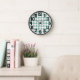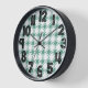 Diese Wanduhr hat ein modernes Design von soliden Meeresrautendiamanten in den Konturen eines Meeresrautenkopfes auf einem weißen Feld.