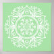 Dieses weiße Mandala sitzt auf einem weichen grünen Hintergrund. Die Farben sind ruhig und kreativ. Teil der Rosenn Mandala Kollektion.