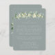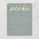 Eine blau-grüne, flache Hochzeitszimmerkarte für Informationen zu Hochzeitsreisen oder für den Weg, wenn Ihr Empfang sich an einem anderen Ort befindet. Mit einer eleganten Garage aus handgemalten Snowberries und Eukalyptus vorne und einem Kranz auf der Kartenrückseite. Alle Texte sind vollständig editierbar und die verstreuten Punkte auf der Vorder- und Rückseite können vor der Bestellung gelöscht werden, wenn Sie es vorziehen. Diese Karte ist mit alternativen botanischen Designs, in einem Landschaftsformat und in verschiedenen Farben erhältlich. Bitte schauen Sie sich die Sammlung in meinem Geschäft an, um alle Optionen und Koordinationsgegenstände zu sehen.