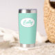 Verschenken Sie Ihre Hochzeitsjury mit diesem trendigen und personalisierten, rostfreien Edelstahl, Thermalwäscher mit ihrem Namen in stilisierter Schrift in einem weißen ovalen Design. Hintergrundfarbe und Skript ist eine Meeresfarbe. Personalisieren Sie Ihren Wärmeleiter, indem Sie den Namen der Brautjungfrau mit dem gewünschten Namen bearbeiten und ersetzen. Erhältlich in vielen beliebten Hochzeitsfarben.