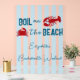 Boil on the beach! Seafood boil bachelorette weekend with a crab and lobster against a coastal blue striped background