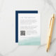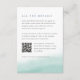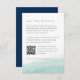 Diese schicke Gästekarte, die sich mit unserer Hochzeitskollektion von Seaglass Tides abstimmt, zeichnet sich durch eine schiere Aquarellwäsche aus Meeresblau am Grund aus und verankert Ihre wichtigsten Hochzeitsdetails wie Hotelunterkünfte, Informationen zum Empfang und die Website. Enthält einen individuell anpassbaren QR-Code, der es den Gästen erleichtert, nach weiteren Details oder UAWG zu suchen.