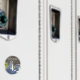 Ein paar Möwen auf einem Geländer mit einem von ihnen geben uns das böse Auge.Copyright © 2012 Fred Ziegler