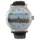 Uhr, Klassische Damenuhr mit schwarzen Lederarmband