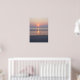 Wunderschönes Plakat mit einem Foto einer kleinen Möwe stehend am Ufer vor einem Ozean Sonnenaufgang in Daytona Beach, Florida.