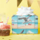 A seagull flies gracefully over a sandy beach, clutching a red and white polka dot bikini top in its beak