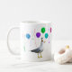 Eine Möwe, die ein Party trägt, das von Ballons und Dampfern umgeben ist. Diese lustige Tasse wäre ideal zum Geburtstag, Abschluss oder Feiern.