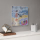 If you are going for that beach house look then you will love this seagulls on the beach watercolour design. The beach gulls are hungry and eyeing up a picnic that has been foolishly left unattended on the sand. The blue of the waves and sky contrast with the golden sand and the fruit on the platter looks good enough to eat. Bring the memories of that perfect day at the seaside into your home with this charming seagulls on the beach painting.