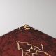 An ornate emblem glows in gold against a textured crimson backdrop, surrounded by arcane symbols and cryptic inscriptions.