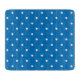 Seamless blue background pattern featuring evenly spaced, small white polka dots.