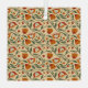 Seamless floral pattern featuring orange and red flowers with green leaves on a beige background. The design is vibrant and decorative.