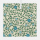 Seamless floral pattern with blue flowers, green leaves, and twisting vines on a light beige background. The design is lively and decorative.