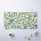 Seamless floral pattern with blue flowers, green leaves, and twisting vines on a light beige background. The design is lively and decorative.