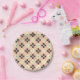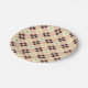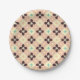 A seamless geometric pattern with cream, beige, and mint green shapes. Bold, dark brown floral designs form a repeating diamond grid. Retro vibe.