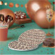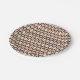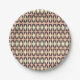 Seamless geometric pattern with dark brown leaf shapes, beige circles, and teal diamond accents. Retro and symmetrical design creates a vintage feel.