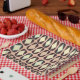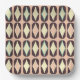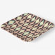 Seamless geometric pattern with dark brown leaf shapes, beige circles, and teal diamond accents. Retro and symmetrical design creates a vintage feel.