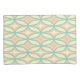 A seamless geometric pattern with overlapping teal circles forming diamond shapes against a peach and cream background, evoking a retro, calming vibe.