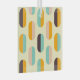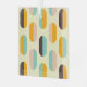 A seamless geometric pattern features vertical, oval shapes in soft yellow, teal, peach, orange, and brown, creating a retro, playful vibe.