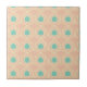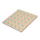 A seamless geometric pattern with teal pentagons and beige outlines on a peach background. The design is symmetrical and conveys a modern, calming vibe.
