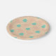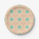 A seamless geometric pattern with teal pentagons and beige outlines on a peach background. The design is symmetrical and conveys a modern, calming vibe.