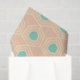 A seamless geometric pattern with teal pentagons and beige outlines on a peach background. The design is symmetrical and conveys a modern, calming vibe.