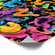 A dazzling, full-color abstract pattern created by a dense, chaotic scatter and layering of small, diverse graphic stickers. The seamlessly tiling design emphasizes the glossy texture, overlapping colors, and vibrant Pop Art aesthetic, forming a complex, high-energy texture field.